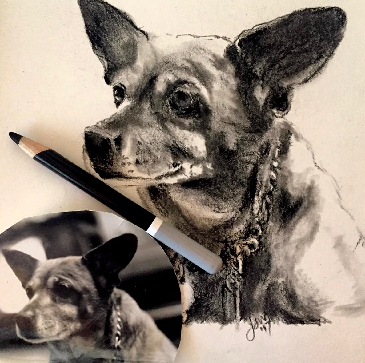 photograph to work from. I usually like to see about ten of your favorite photos of him or her. The better the photograph, the better the portrait will be. At this point, payment is arranged and recieved. Then I
